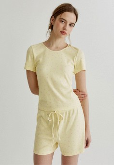 Желтые женские домашние футболки и лонгсливы