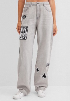 Женские широкие и расклешенные джинсы с рисунками и надписями