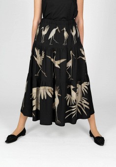 Женские юбки-трапеции и широкие с рисунками и надписями