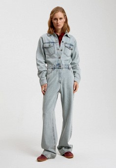 Голубые женские джинсовые комбинезоны