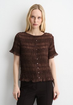 Коричневые женские блузы с рюшами и воланами