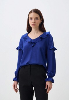 Синие женские блузы с рюшами и воланами