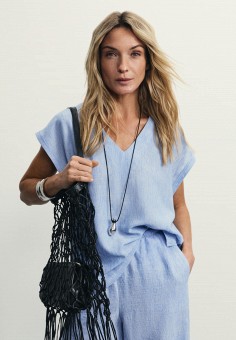 Голубые женские блузы с коротким рукавом