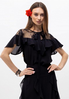 Женские блузы с коротким рукавом с воланами, рюшами или оборками
