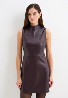 Женские кожаные платья c V образным вырезом