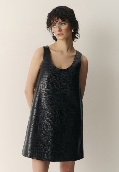 Черные женские кожаные платья премиум класса