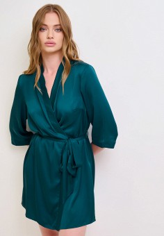 Бирюзовые женские атласные и кружевные халаты
