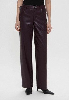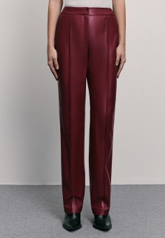 Бордовые женские кожаные брюки