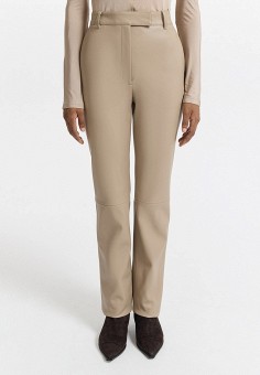 Бежевые женские кожаные брюки
