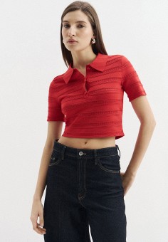 Женские свитеры с воротником поло премиум класса укороченные