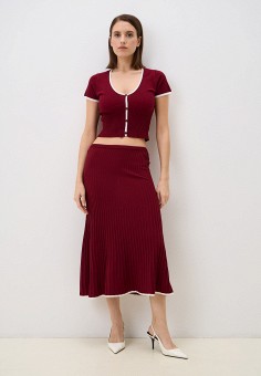 Бордовые вязаные костюмы с юбкой