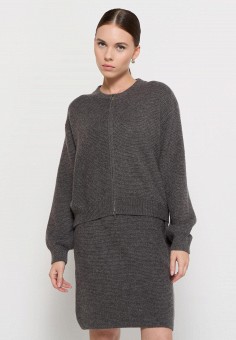 Серые вязаные костюмы с юбкой