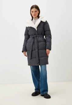 Серые зимние пальто с меховым воротником
