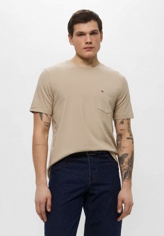 Бежевые мужские футболки и поло Tommy Hilfiger