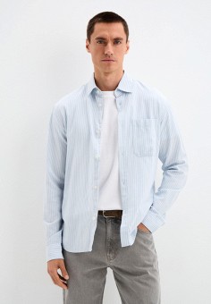 Голубые мужские рубашки с длинным рукавом Tom Tailor