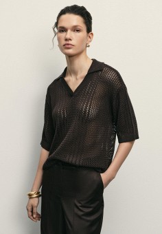 Коричневые женские свитеры с воротником поло Zarina